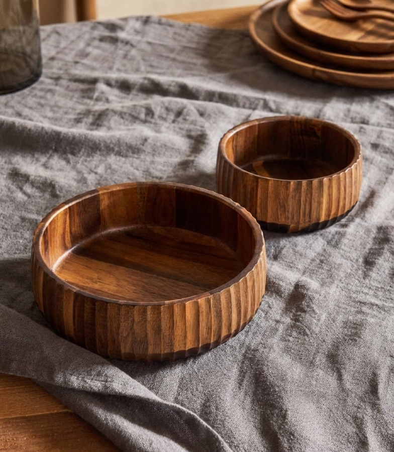 %100 doğal akasya ağacından üretilmiştir.; Doğal ahşap olduğu için üründe genel görünümü bozmayacak şekilde renk farklılıkları görülebilmektedir.; Tırtıklı dış yüzeyi ile şık bir görünüm sunar.; Tantitoni güvencesiyle Çin'de üretilmiştir.