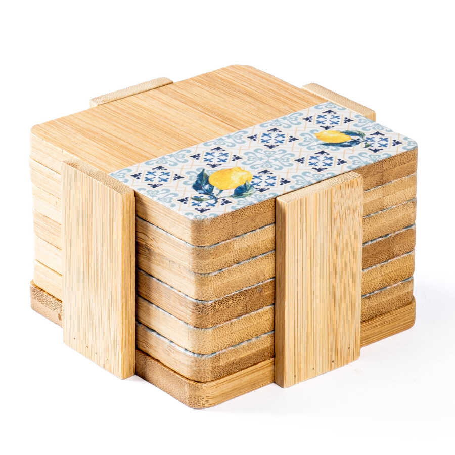 BAMBU 6 PARÇA STANDLI DESENLİ BARDAK ALTLIĞI SETİ 11.5X11.5CM
