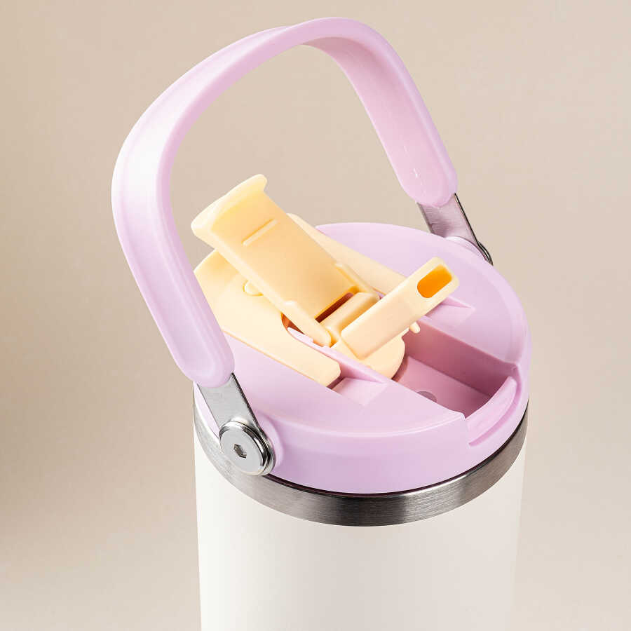 BEYAZ PASLANMAZ ÇELİK KATLANIR PİPETLİ TERMOS BARDAK 750ML