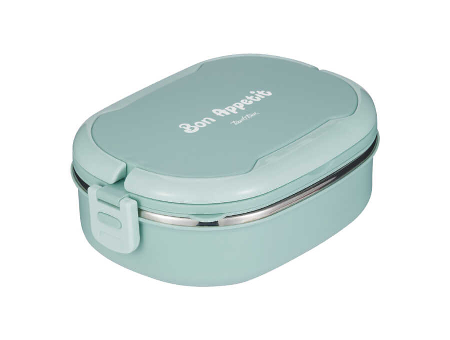 ÇATAL VE KAŞIKLI YEŞİL PASLANMAZ ÇELİK DİKDÖRTGEN YEMEK TAŞIMA KABI 900ML