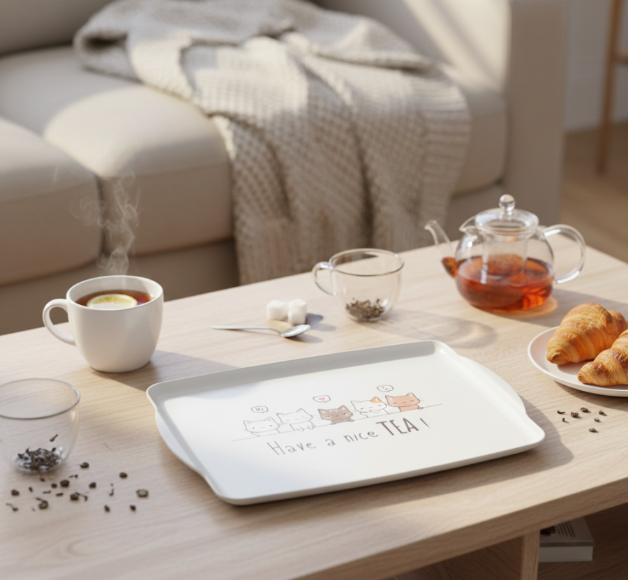 MELAMİN KEDİ DESENLİ 2Lİ DİKDÖRTGEN KAYDIRMAZ TEPSİ 34-41CM