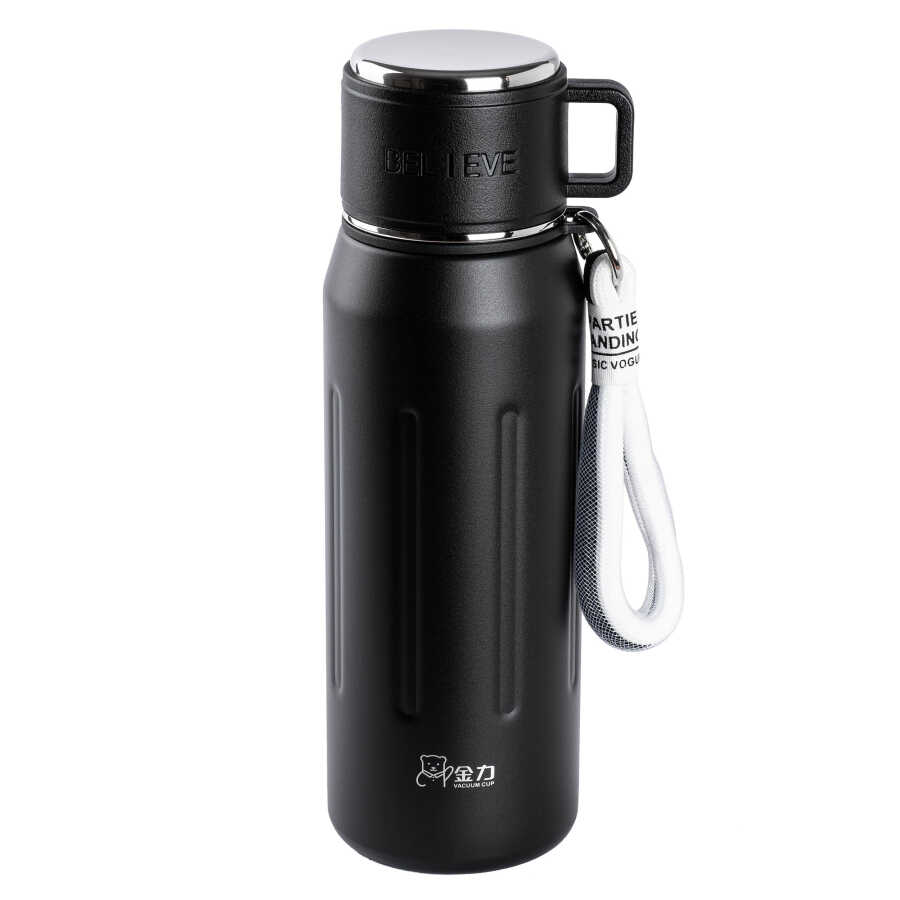 OKADI BARDAK KAPAKLI SİYAH PASLANMAZ ÇELİK TERMOS 750ML