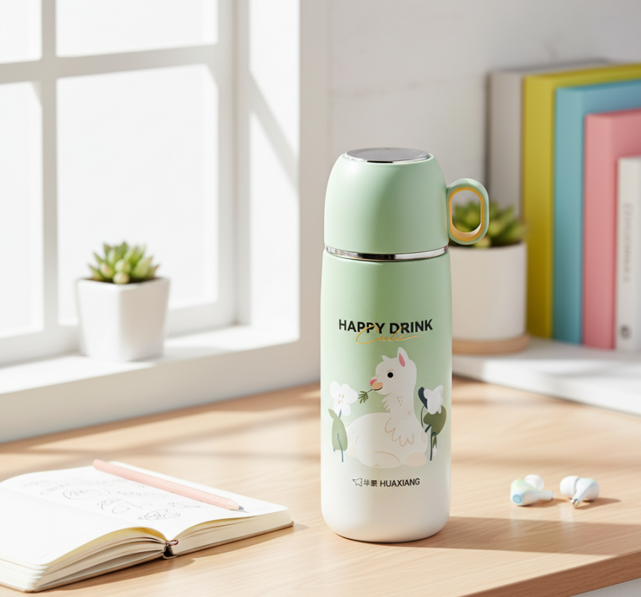 OKADI YEŞİL DESENLİ BARDAKLI PASLANMAZ ÇELİK TERMOS 300ML