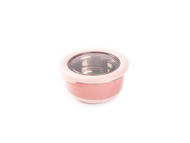 TANTİTONİ PEMBE PASLANMAZ ÇELİK YUVARLAK YEMEK TAŞIMA KABI 220ML