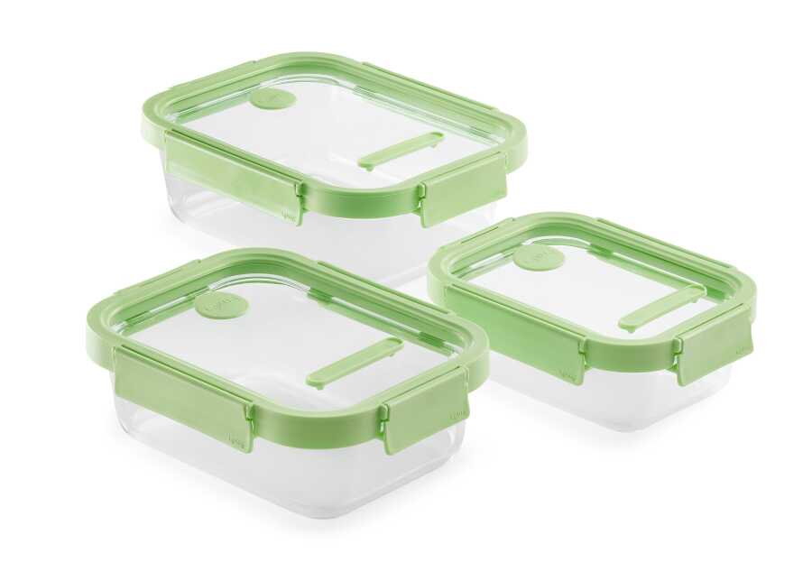 YEŞİL 3 PARÇA CAM SIZDIRMAZ KAPAKLI DİKDÖRTGEN SAKLAMA KABI SETİ