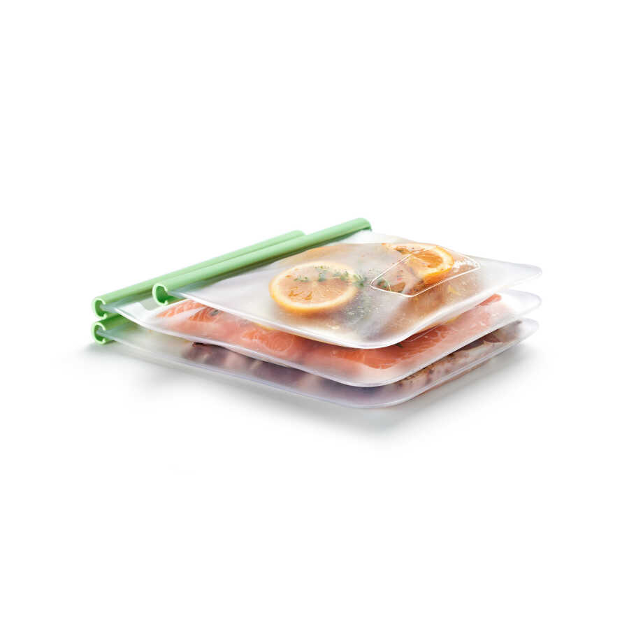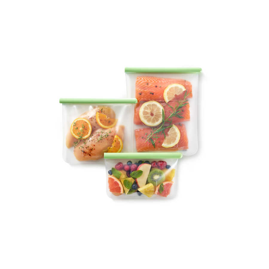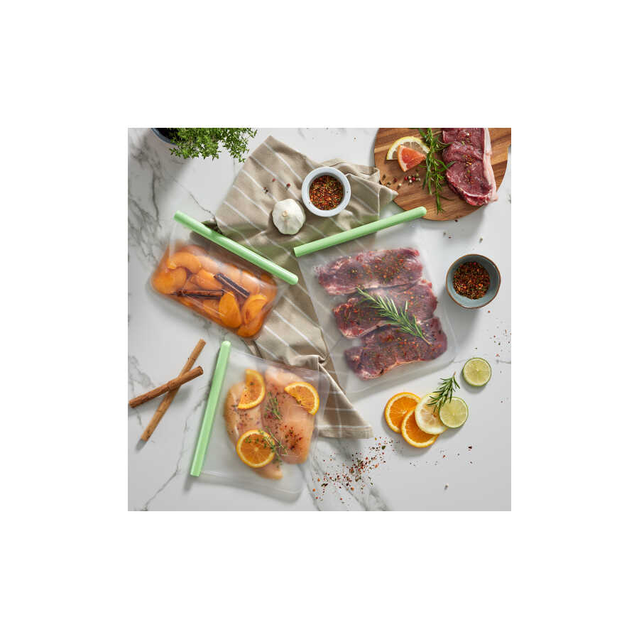 YEŞİL 3LÜ YENİDEN KULLANILABİLİR SİLİKON DÜZ SAKLAMA POŞETİ SETİ