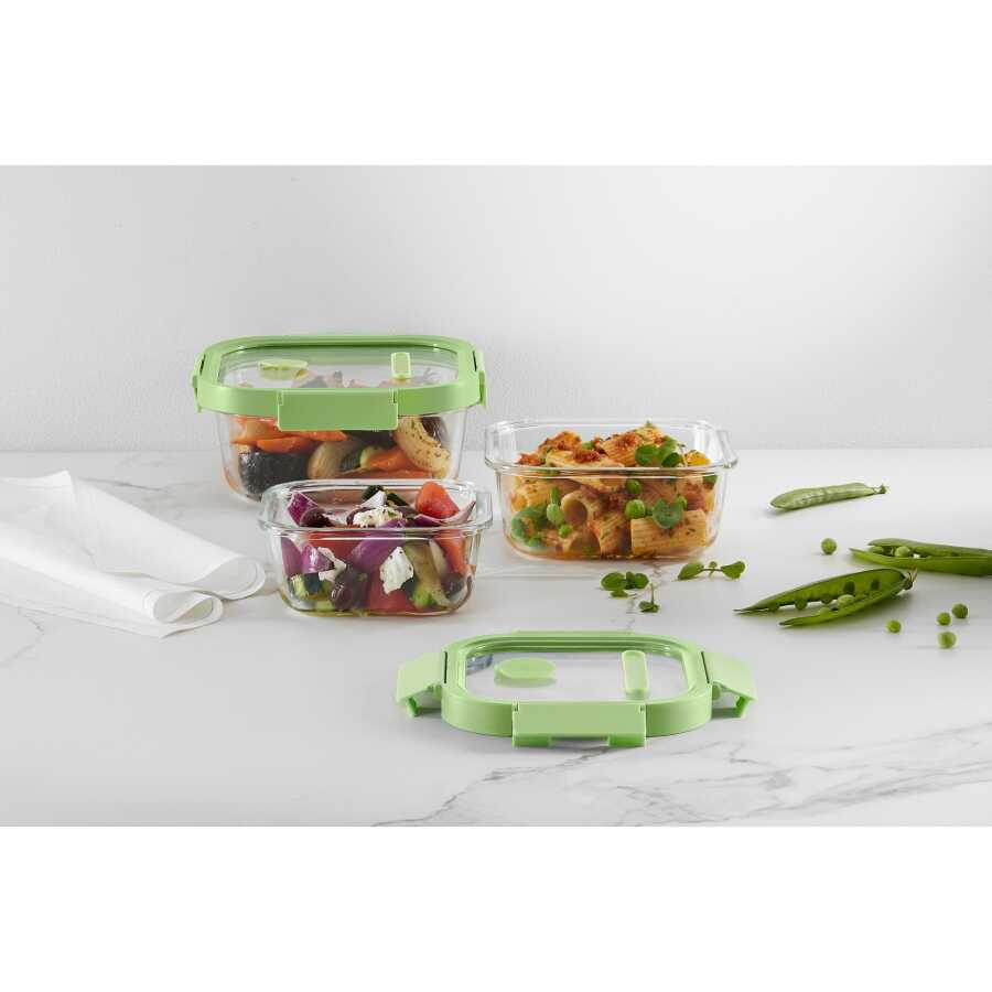 YEŞİL CAM SIZDIRMAZ KAPAKLI KARE SAKLAMA KABI 1100ML