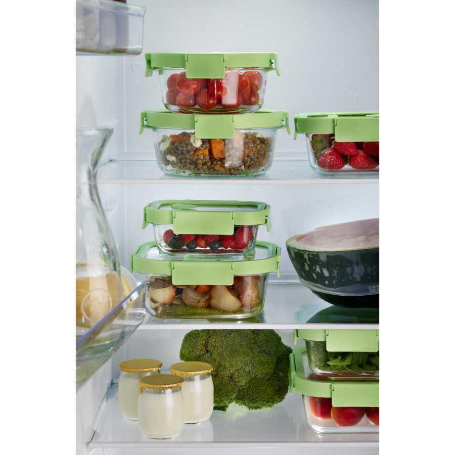YEŞİL CAM SIZDIRMAZ KAPAKLI KARE SAKLAMA KABI 320ML